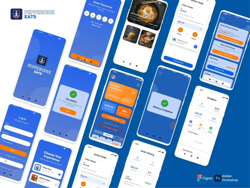 Pepperdine Eats is a smart campus food delivery platform designed exclusively for students, faculty, and staff. The app connects university-approved food outlets, student customers, and delivery partners into one seamless digital ecosystem. Students can browse menus, place real-time orders, track deliveries, and make secure payments.