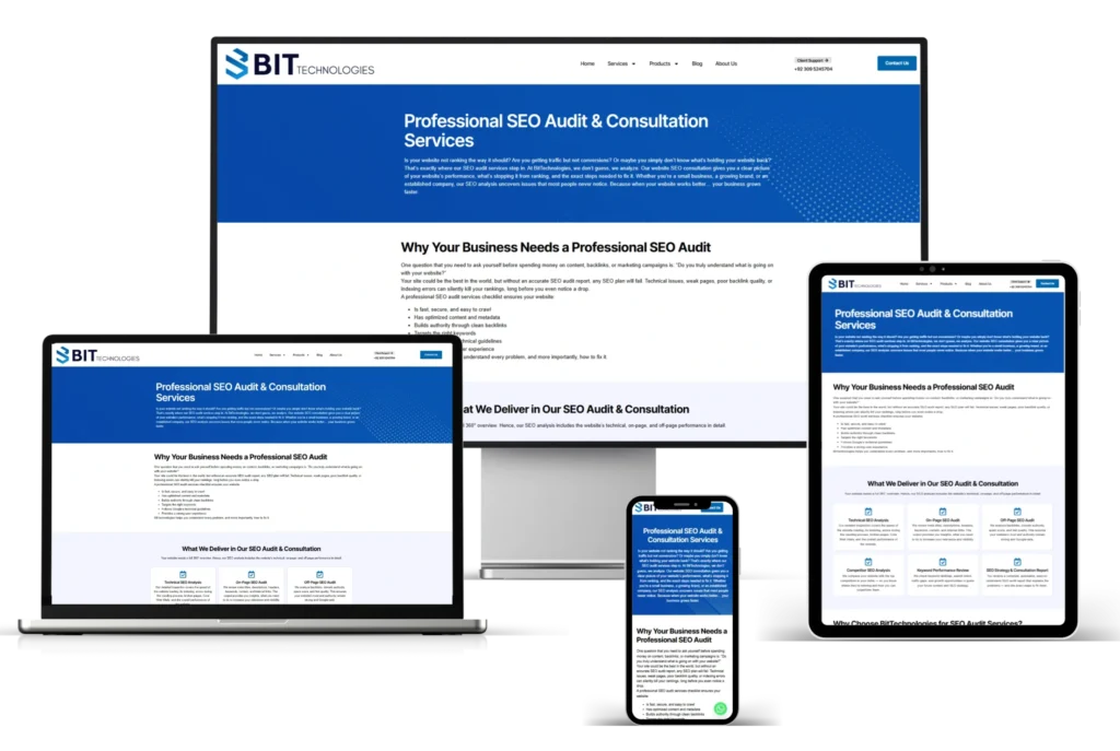 At BitTechnologies, we don’t guess, we analyze. Our website SEO consultation gives you a clear picture of your website’s performance, what’s stopping it from ranking, and the exact steps needed to fix it. Whether you’re a small business, a growing brand, or an established company, our SEO analysis uncovers issues that most people never notice.